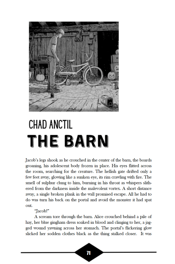 Trust me when I say this is one of my darkest tales yet. If you’re looking for a good old-fashioned nightmare, you’ve found it. ‘The Barn’ takes the classic setup of a high school Halloween party and twists it into something truly terrifying when the fun and games take a bloody, demonic turn. It’s loud, it’s frantic, and the terror doesn’t let up. I’m incredibly proud of ‘The Barn’ and excited for you all to read it!