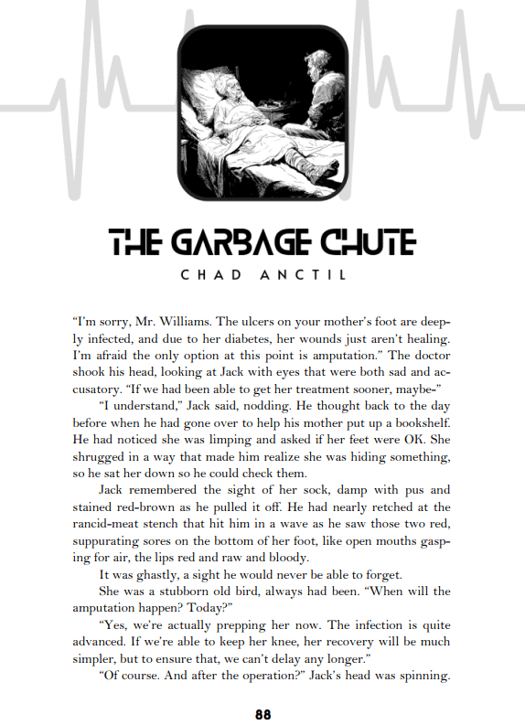 I’m thrilled to have my story “The Garbage Chute” included — it’s my first foray into full-on body horror, and it’s quite a ride!