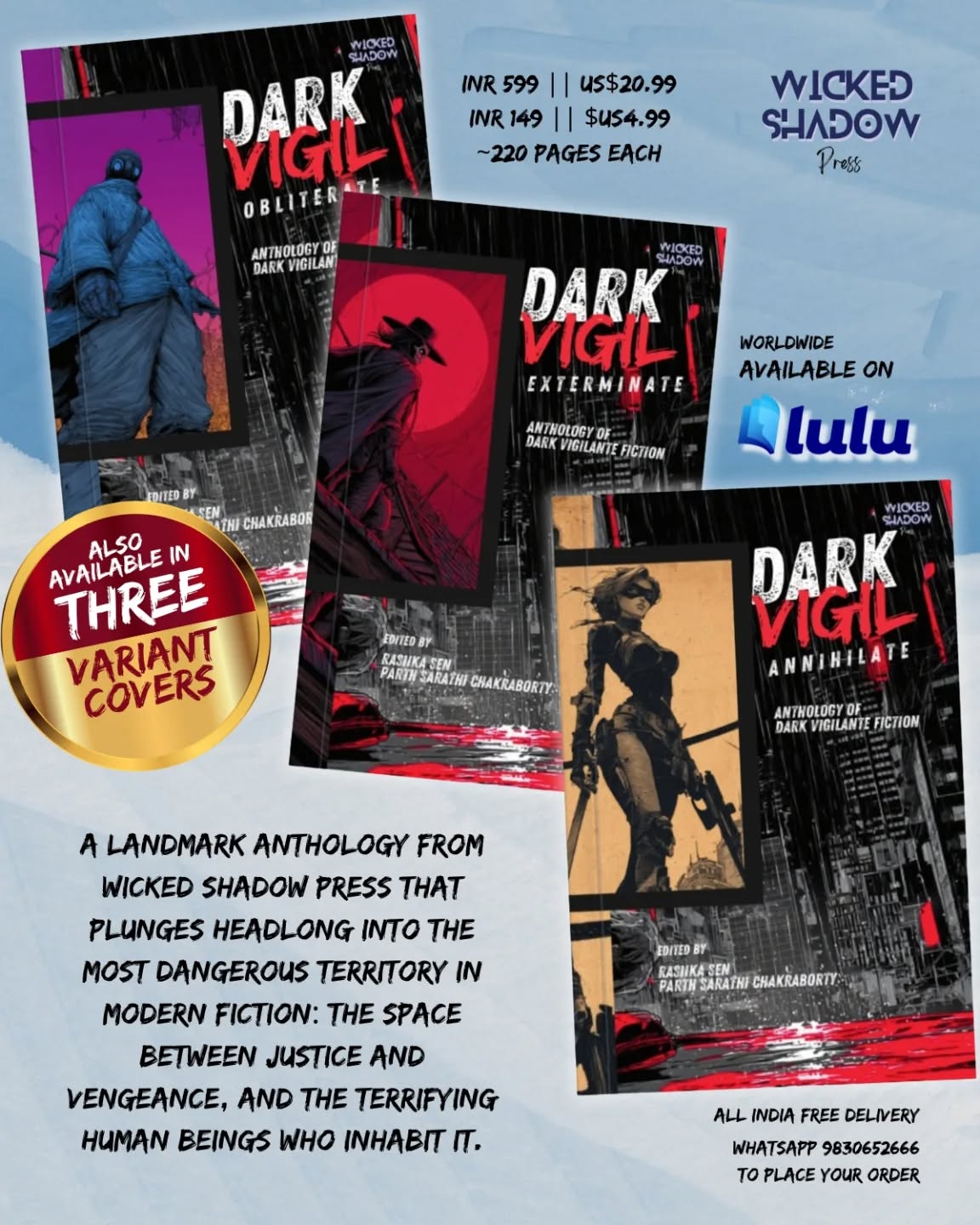 The wait is finally over. The shadows are lengthening, and the scales of justice are being tipped by those who refuse to wait for a courtroom verdict. We are thrilled to announce the release of DARK VIGIL, a landmark three-volume anthology from Wicked Shadow Press that explores the razor-thin line between righteous vengeance and absolute darkness.